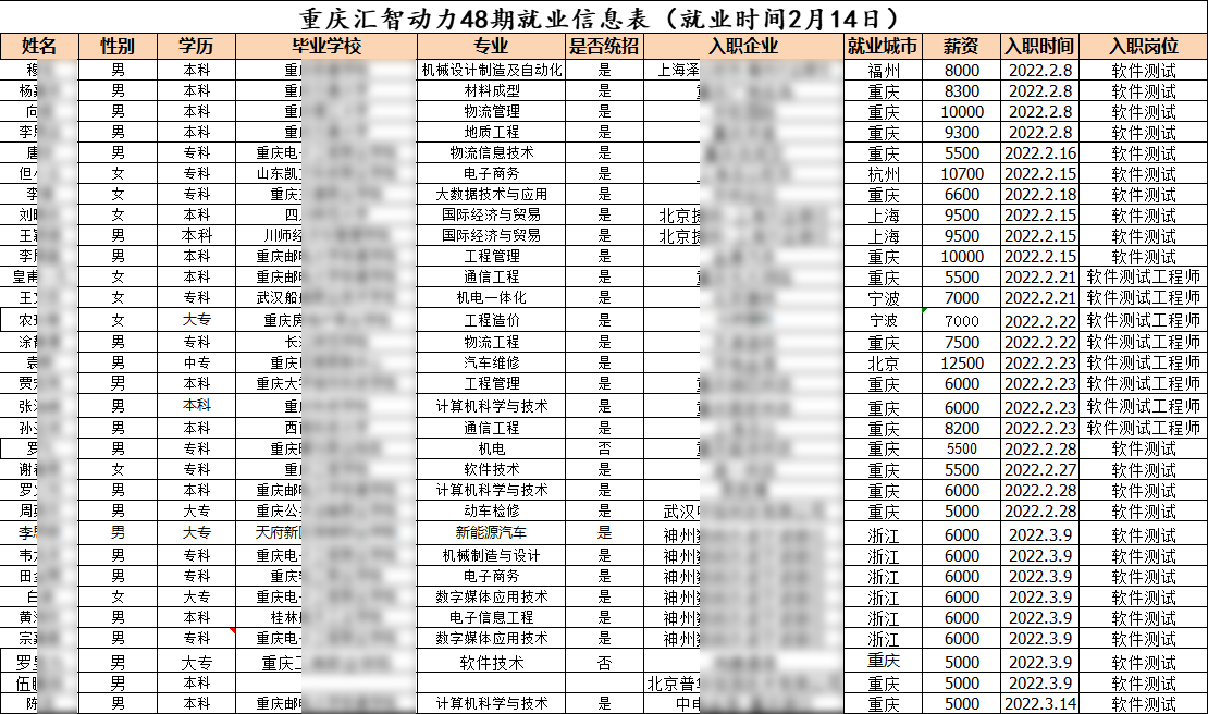 匯智動(dòng)力重慶分校48期就業(yè)情況