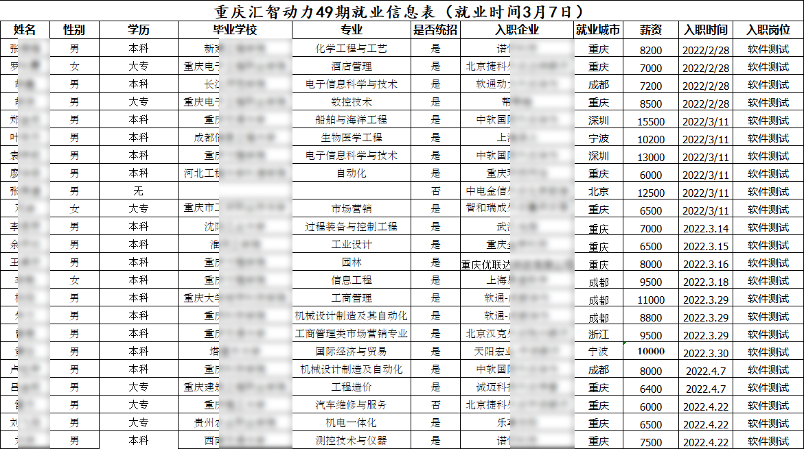 匯智動力重慶分校49期就業(yè)情況