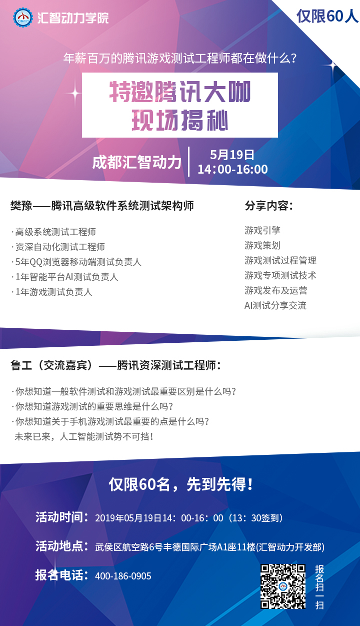 為了讓大家能更深入、更全面地了解游戲測試工作的價(jià)值,提升在游戲測試方面的核心技能,匯智動力特地邀請到了騰訊集團(tuán)高級工程師、軟件測試行業(yè)十多年“老油條”——樊工給我們帶來一場關(guān)于“游戲測試”的知識盛宴。