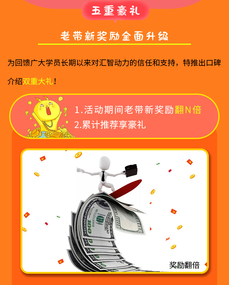為了感謝大家5年來對匯智動力的信任和支持,值此匯智動力五周年暨武漢校區(qū)開業(yè)之際,我們特推出以下感恩回饋活動: