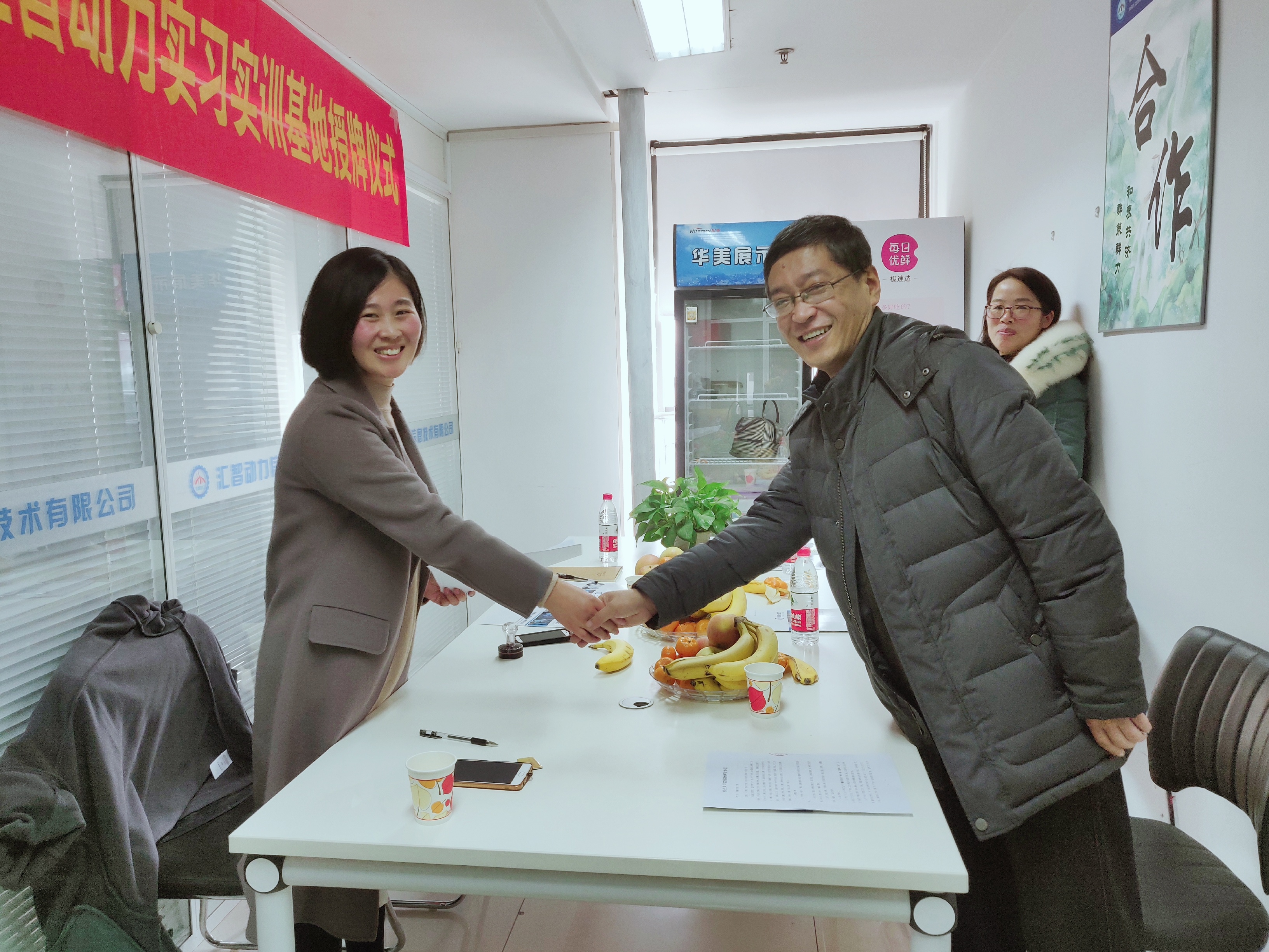 此次授牌儀式在成都匯智動(dòng)力南京分公司會(huì)議室舉行,儀式上,成都匯智動(dòng)力南京分公司執(zhí)行校長(zhǎng)侍芳女士與安徽財(cái)經(jīng)大學(xué)管理科學(xué)與工程學(xué)院信息管理與信息系統(tǒng)系主任瑞斌簽訂了共建實(shí)習(xí)實(shí)訓(xùn)基地協(xié)議書。