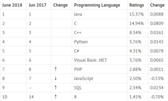 2018年以來,Java、JavaScript、Python開始爭奪編程語言界的頭把交椅。不過,霸主的地位不可輕易動搖。2018年Java依舊是最受歡迎的編程語言。