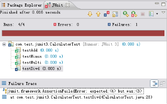 一個(gè)計(jì)算器軟件具有加、減、乘、除4種基本功能,對(duì)其實(shí)現(xiàn)單元測(cè)試,利用Junit單元測(cè)試工具實(shí)施如下。