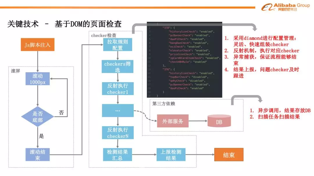 同時(shí)針對(duì)于不同的業(yè)務(wù)場景,我們開發(fā)了不同的頁面檢測能力,比如針對(duì)于 DOM 樹的頁面檢查: