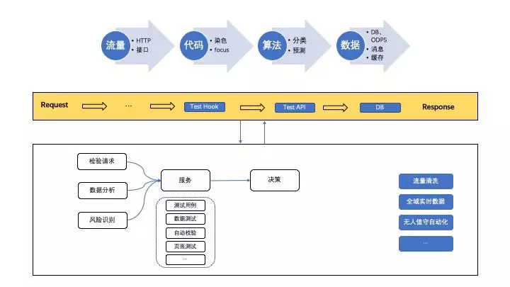 在以數(shù)據(jù)驅(qū)動(dòng)的業(yè)務(wù)發(fā)展進(jìn)程中,我們的測試主體已經(jīng)從簡單的代碼轉(zhuǎn)變?yōu)閿?shù)據(jù) + 算法?;蛘哒f,業(yè)務(wù)對(duì)質(zhì)量的核心述求,已經(jīng)從簡單的頁面錯(cuò)誤、代碼 BUG 到數(shù)據(jù)的準(zhǔn)確性、算法的有效性(我老板在每次大促前,都要再三叮囑我數(shù)據(jù)不能錯(cuò))。如何來感知質(zhì)量風(fēng)險(xiǎn),以及捕獲各類的異常?那必須先把數(shù)據(jù)、流量、監(jiān)控來做收口,同時(shí)提升測試工具在大數(shù)據(jù)分析上的能力。