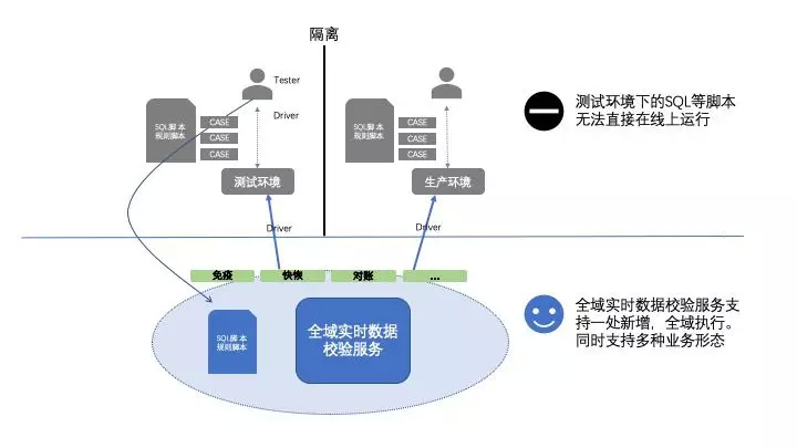 基于這些思考,我們構(gòu)建了全域?qū)崟r(shí)數(shù)據(jù)校驗(yàn)?zāi)芰?,是一款通過實(shí)時(shí)獲取線上 DB 中的海量業(yè)務(wù)數(shù)據(jù),完成業(yè)務(wù)數(shù)據(jù)校驗(yàn)、質(zhì)量風(fēng)險(xiǎn)感知的產(chǎn)品。