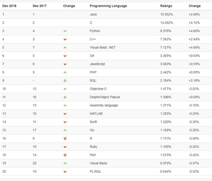 計(jì)算機(jī)語(yǔ)言目前的格局簡(jiǎn)單概括一下就是:老兵老當(dāng)益壯、新人異軍突起。Tiobe公布了12月份的編程語(yǔ)言排行榜,傳統(tǒng)老兵Java、C、C++、VB還是在前五強(qiáng)占據(jù)了四個(gè)席位。新人Python超越C++排名第三。
