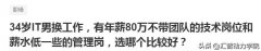 前段時間在網(wǎng)上看到一個問題,:34歲IT男換工作,有年薪80萬不帶團隊的技術(shù)崗位,還有一個薪水低一些的管理崗位,選哪個好?